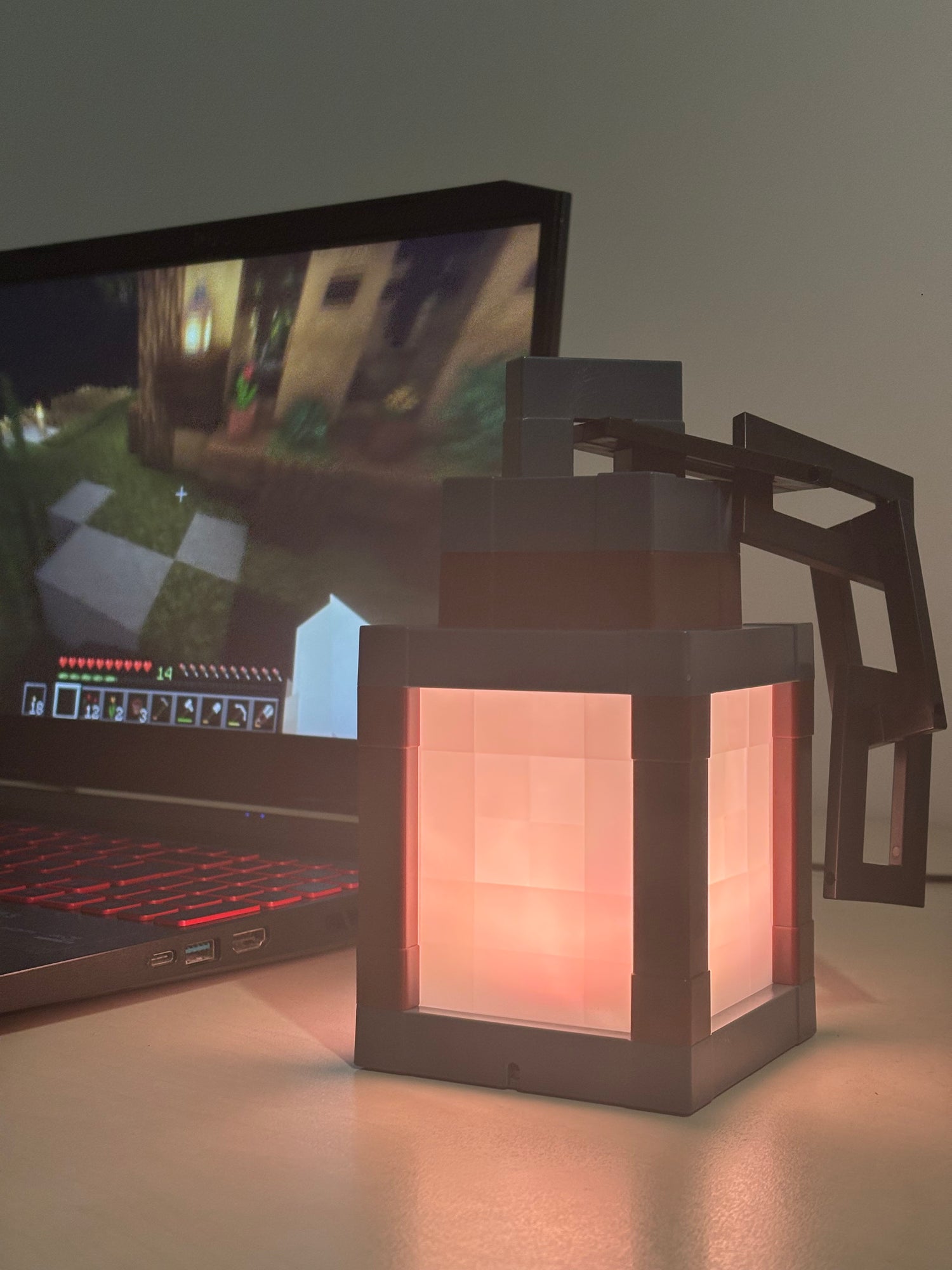 Inspired by the iconic block-style look, this RGB lantern brings a warm, cozy atmosphere to any room, whether it’s a gaming setup, bedroom, or workspace.